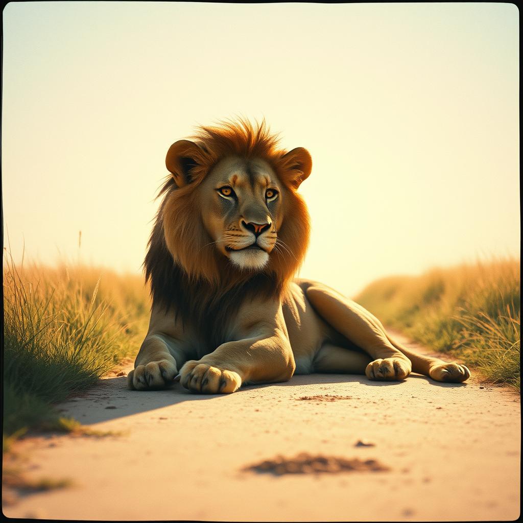 Un jeune lion calme, concentré, lucide